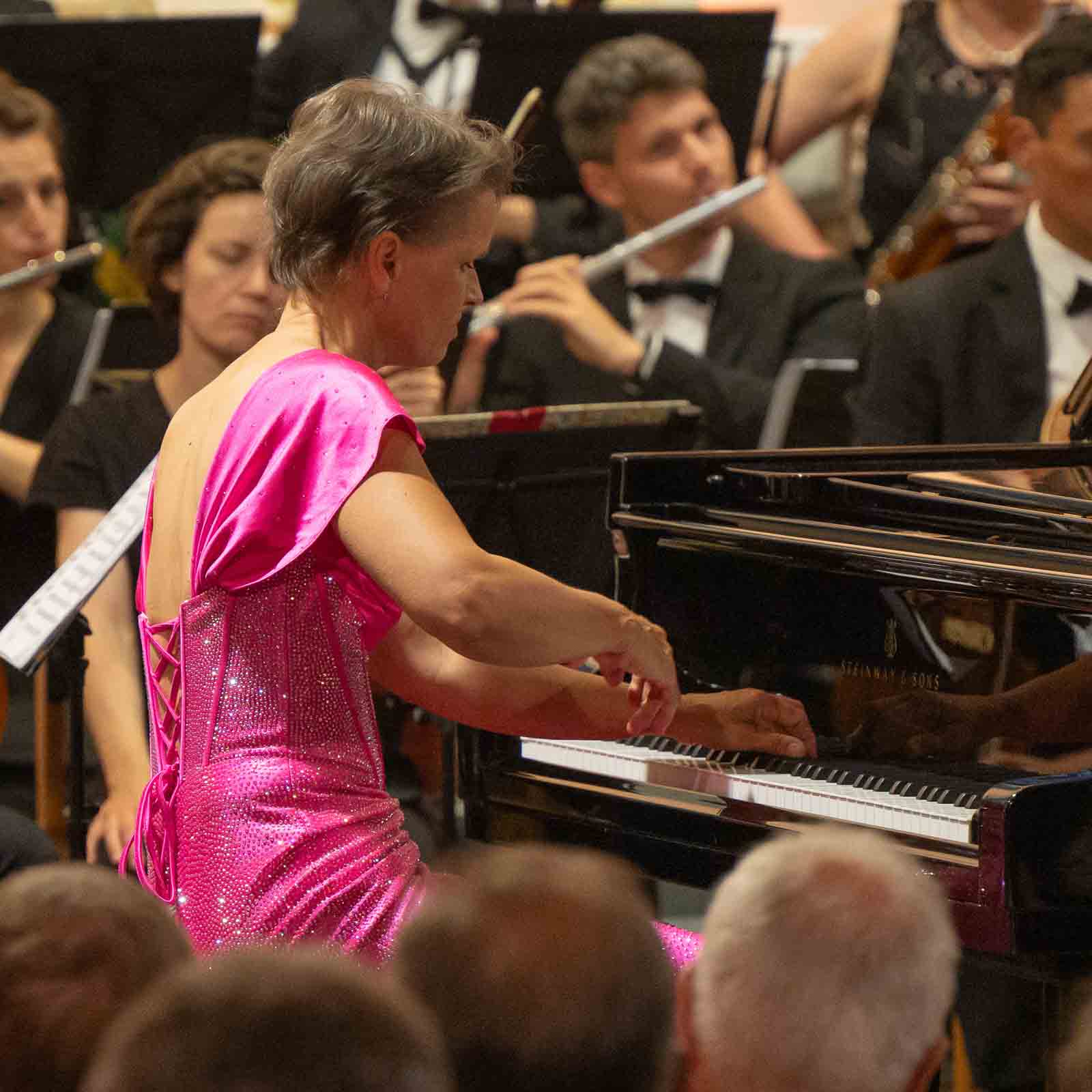 Am 6. September verzauberten die gefeierte Pianistin Gerlint Böttcher und die Junge Kammerphilharmonie Berlin mit Dirigent Aurélien Bello die Kreuzkirche Königs Wusterhausen. Im ausverkauften Saal brillierten die Musiker und Musikerinnen in der ersten Hälfte des Eröffnungskonzerts mit dem 2. Klavierkonzert von Saint-Saëns und einer Rarität von Pierre Wissmer.