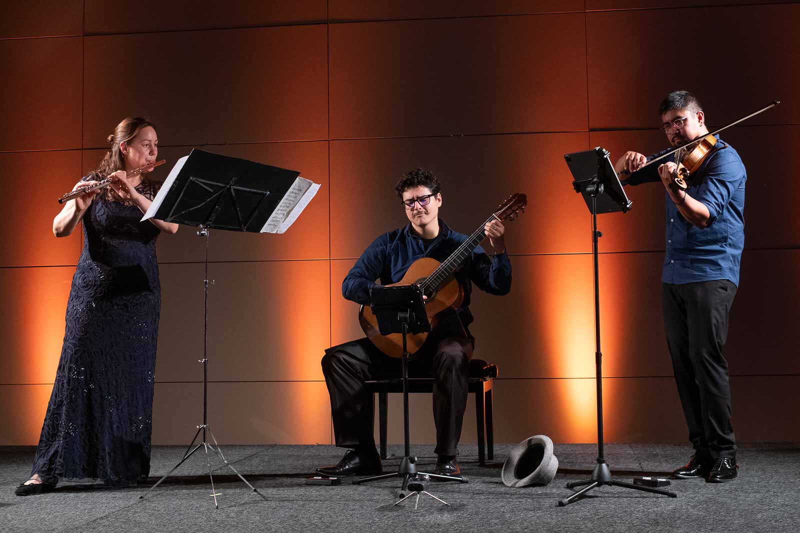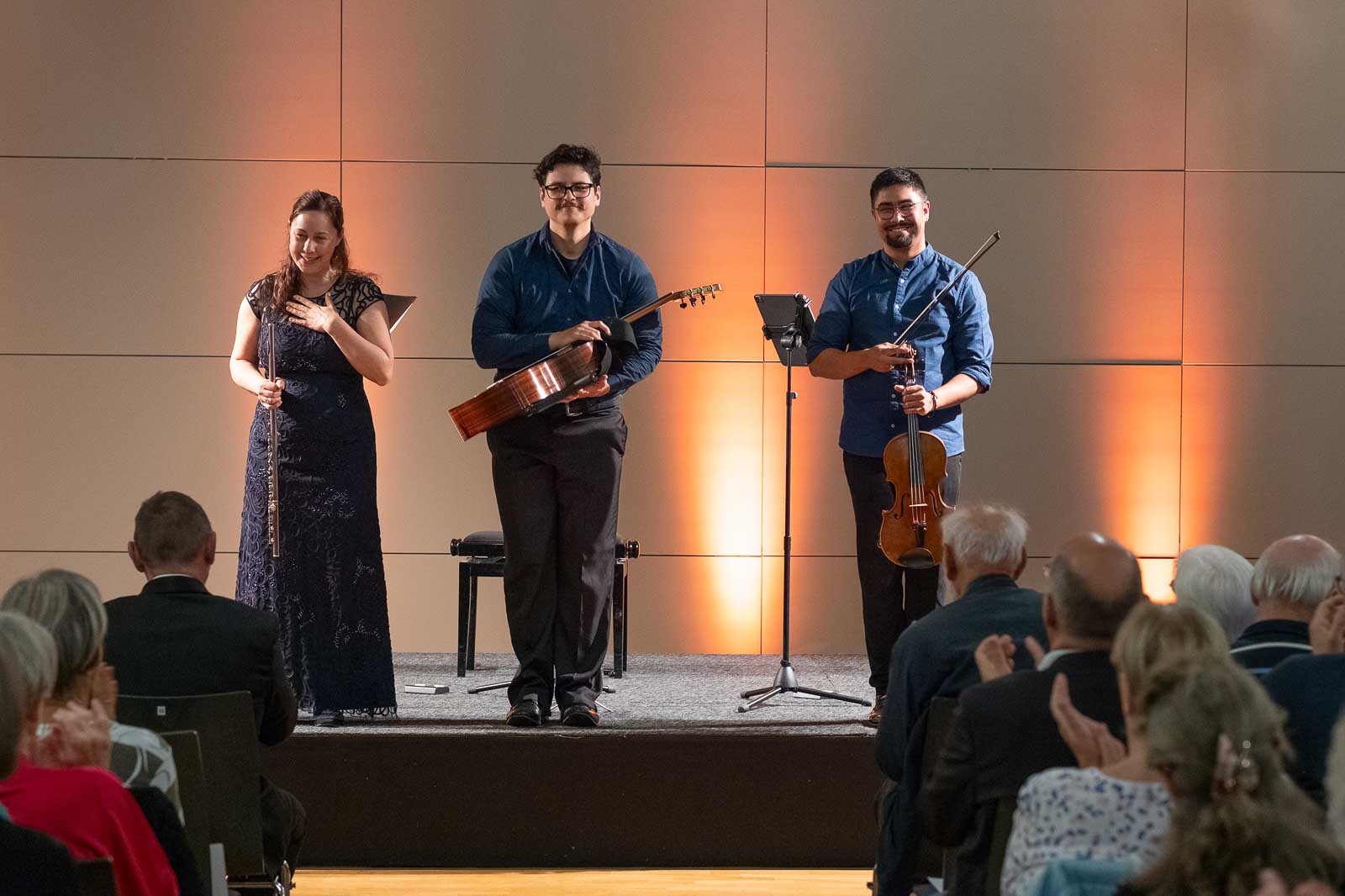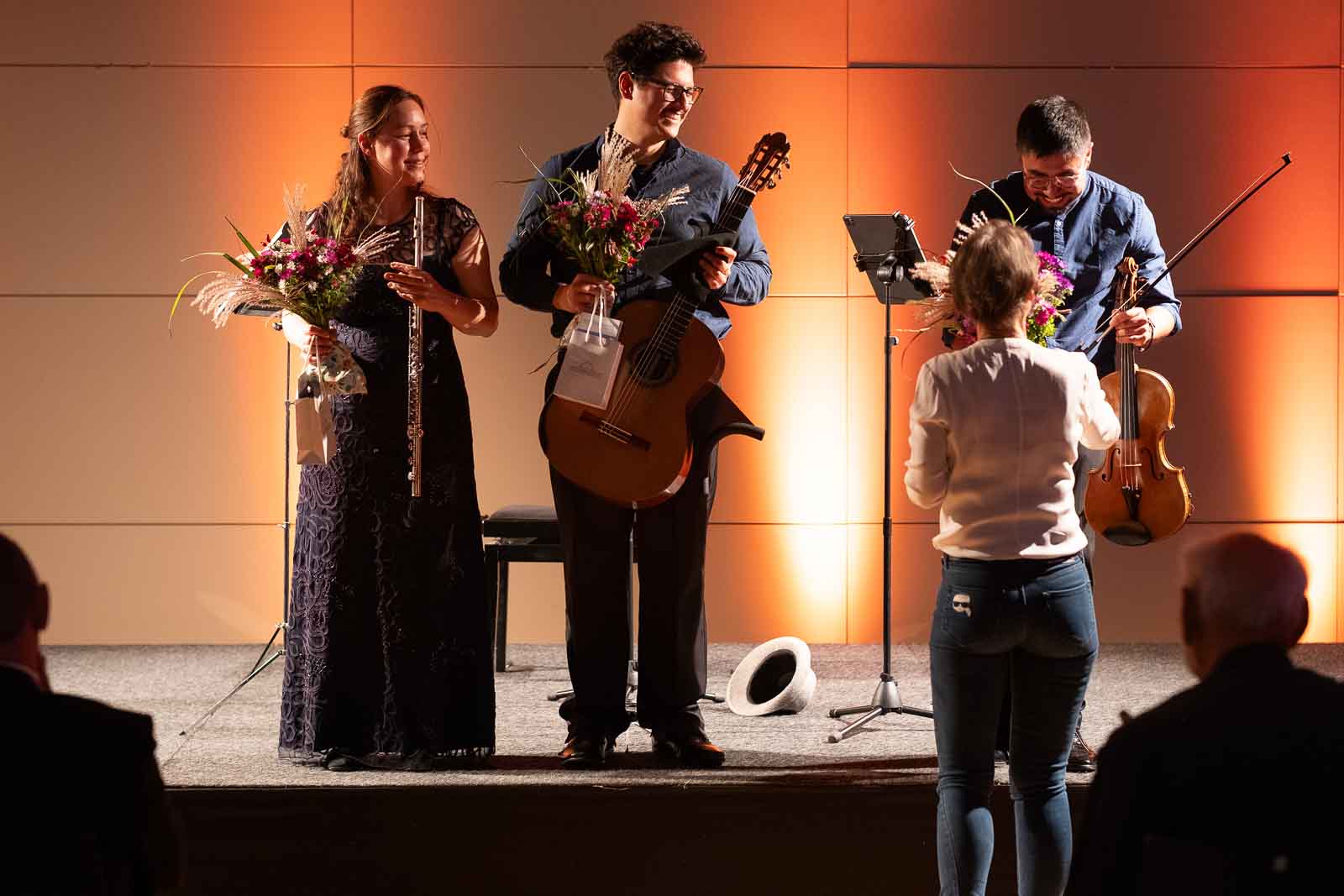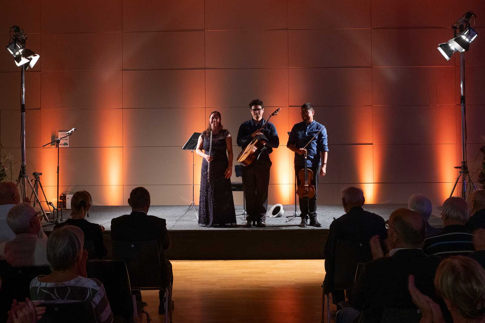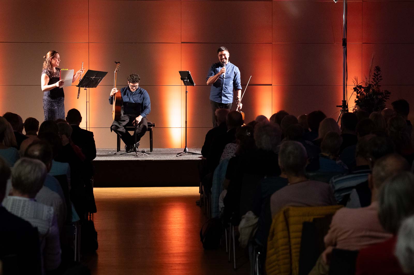 Am 27. September begeisterte das SaitenWind Trio im Großen Saal der Finanzhochschule. Erstmals in neuer Besetzung mit Francisco Fernández an der Bratsche spielte das Trio ein mitreißendes Programm von Bach bis Tango. Hier genoss das Publikum neben einem Stück des Tango-Meisters Astor Piazzolla auch die kleine Programmänderung – ein wunderschönes Trio von Kreutzer – und applaudierte kräftig.